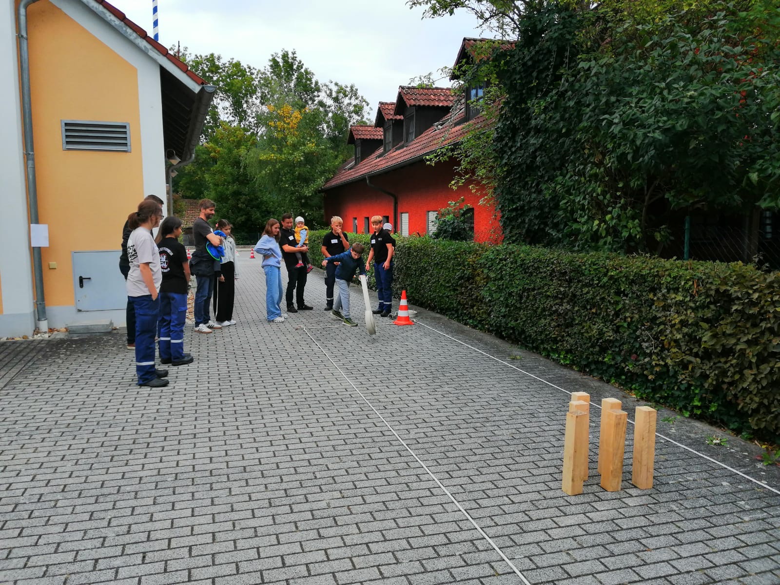 Nach einführenden Worten von Martin Seidl über die Jugendarbeit in der Freiwilligen Feuerwehr durften die Interessierten die Feuerwehr Friesheim erkunden. Jugendliche der bisherigen Jugendgruppe betreuten verschiedene Stationen und warben um zukünftige Kameraden. Bei den Stationen „Fahrzeug und Technik“ und „Persönliche Schutzausrüstung“ hörten die Besucher Interessantes und durften auch schon mal den Schutzanzug Probe tragen. In drei weiteren Stationen wurde spielerisch Wissen und Handgriffe der Feuerwehrarbeit vermittelt, wobei der Spaß an erster Stelle stand. So ließen es sich auch anwesende Eltern nicht nehmen beim „Schlauch-Kegeln“ oder „Zielspritzen“ Ihr Können zu zeigen.