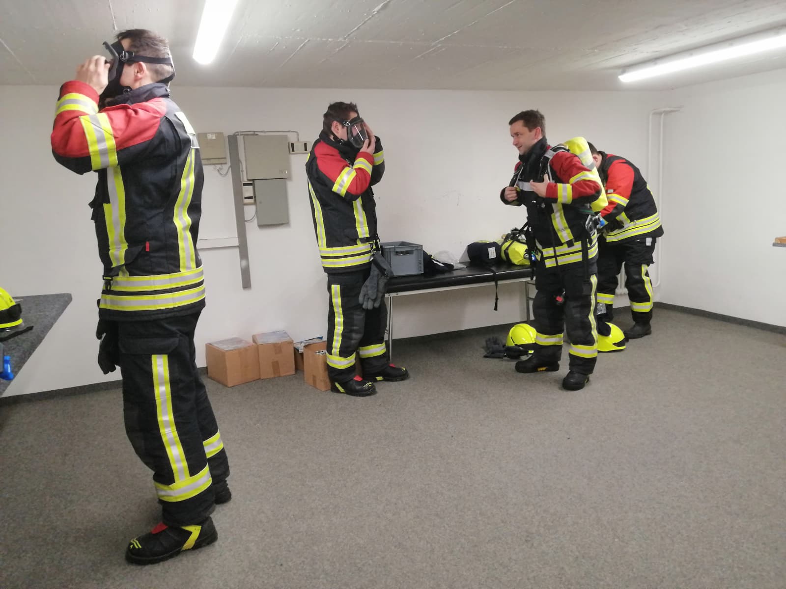 Vier unserer Kameraden waren zudem in der Atemschutzübungsanlage und haben erfolgreich ihren jährlichen Streckendurchgang, die sogenannte Belastungsübung, absolviert