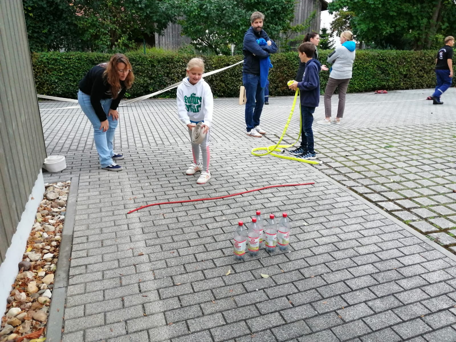 Nach einführenden Worten von Martin Seidl über die Jugendarbeit in der Freiwilligen Feuerwehr durften die Interessierten die Feuerwehr Friesheim erkunden. Jugendliche der bisherigen Jugendgruppe betreuten verschiedene Stationen und warben um zukünftige Kameraden. Bei den Stationen „Fahrzeug und Technik“ und „Persönliche Schutzausrüstung“ hörten die Besucher Interessantes und durften auch schon mal den Schutzanzug Probe tragen. In drei weiteren Stationen wurde spielerisch Wissen und Handgriffe der Feuerwehrarbeit vermittelt, wobei der Spaß an erster Stelle stand. So ließen es sich auch anwesende Eltern nicht nehmen beim „Schlauch-Kegeln“ oder „Zielspritzen“ Ihr Können zu zeigen.