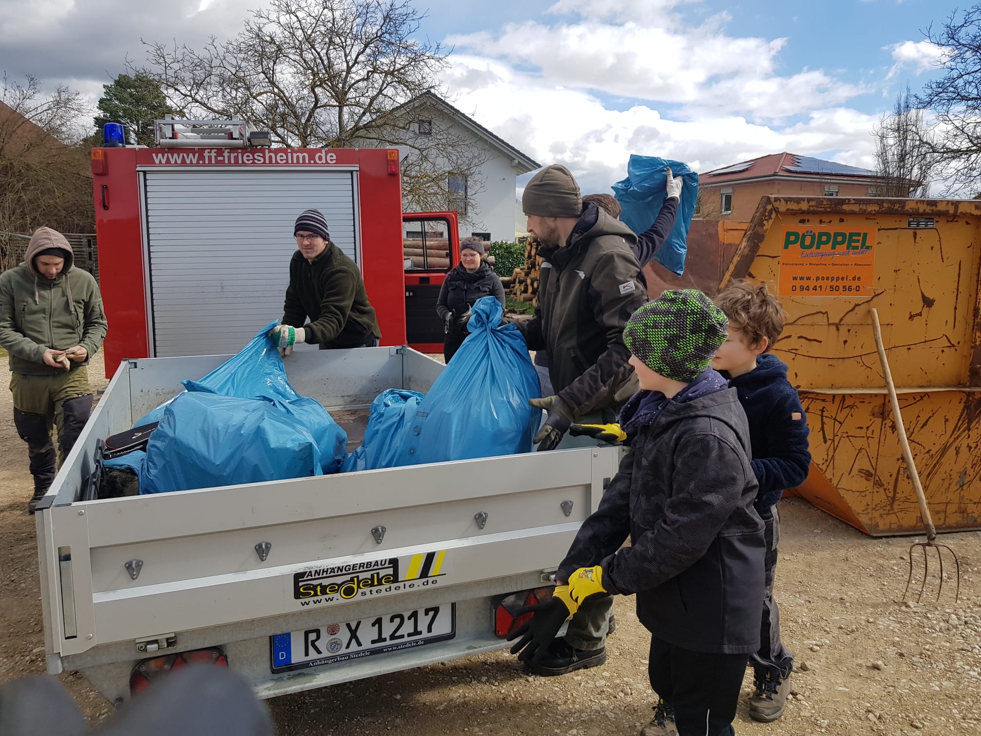 Viele fleißige Hände alle Friesheimer Vereine beteiligten sich wieder am RamaDama 2023. Gemeinsam säuberten sie die Friesheimer Fluren, Wege und Spielplätze von weggeworfenem Müll. Sogar das Wetter half mit und unterstütze die fleißigen Sammler mit Sonnenschein. Nach erfolgreicher Arbeit saßen alle noch gemütlich im Vereinsheim beisammen und ließen sich den von der Gemeinde bezahlten Leberkäse mit Kartoffelsalat schmecken.