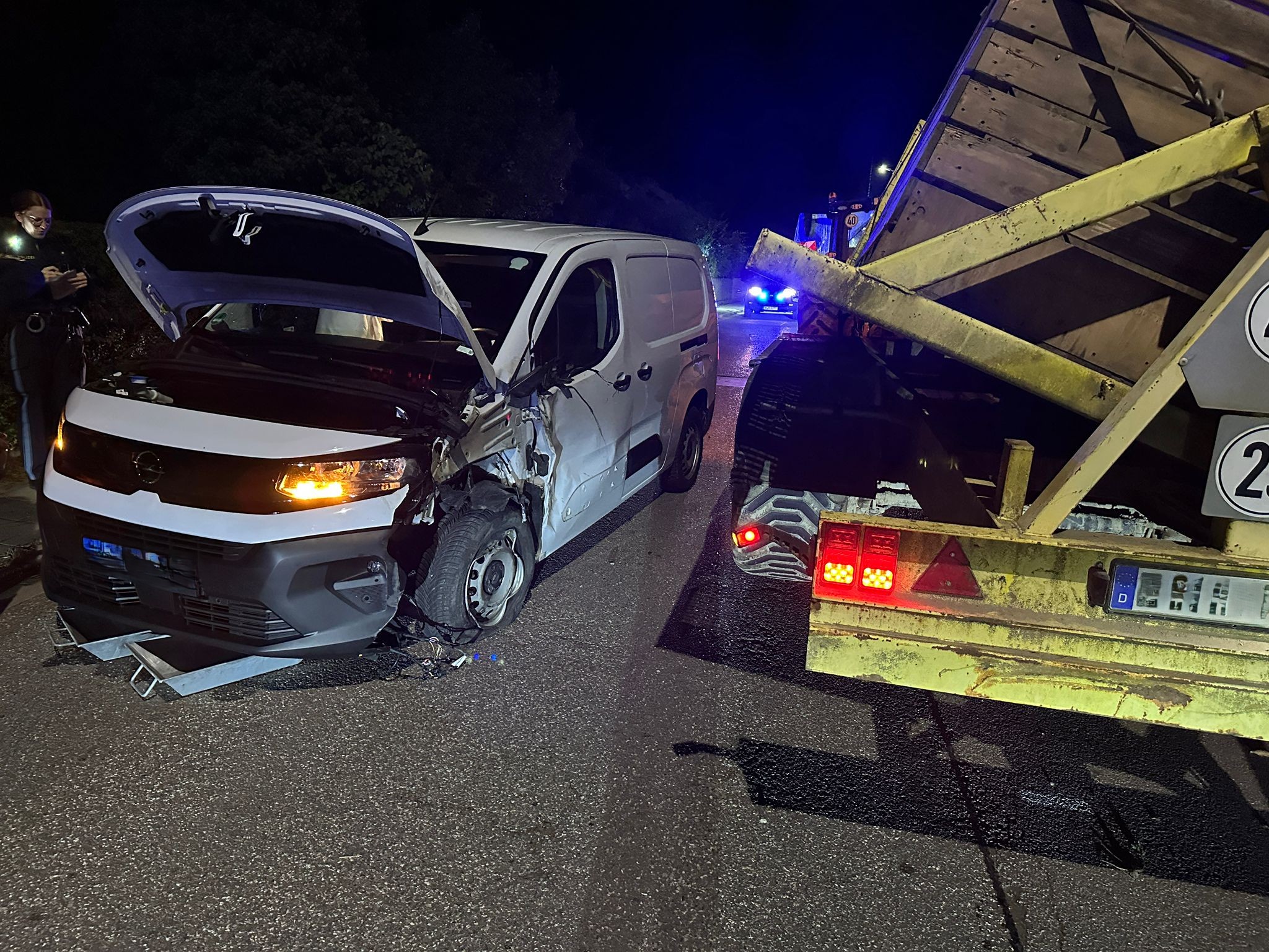 VerkehrsunfallVU zwischen einem Traktor und einem Kleintransporter. Beide Fahrzeuge waren nicht mehr fahrtauglich. Der Kleintransporter musste abgeschleppt werden. Beim Traktor wurde an der Einsatzstelle der Reifen gewechselt. Es gab glücklicherweise keine verletzen Personen.