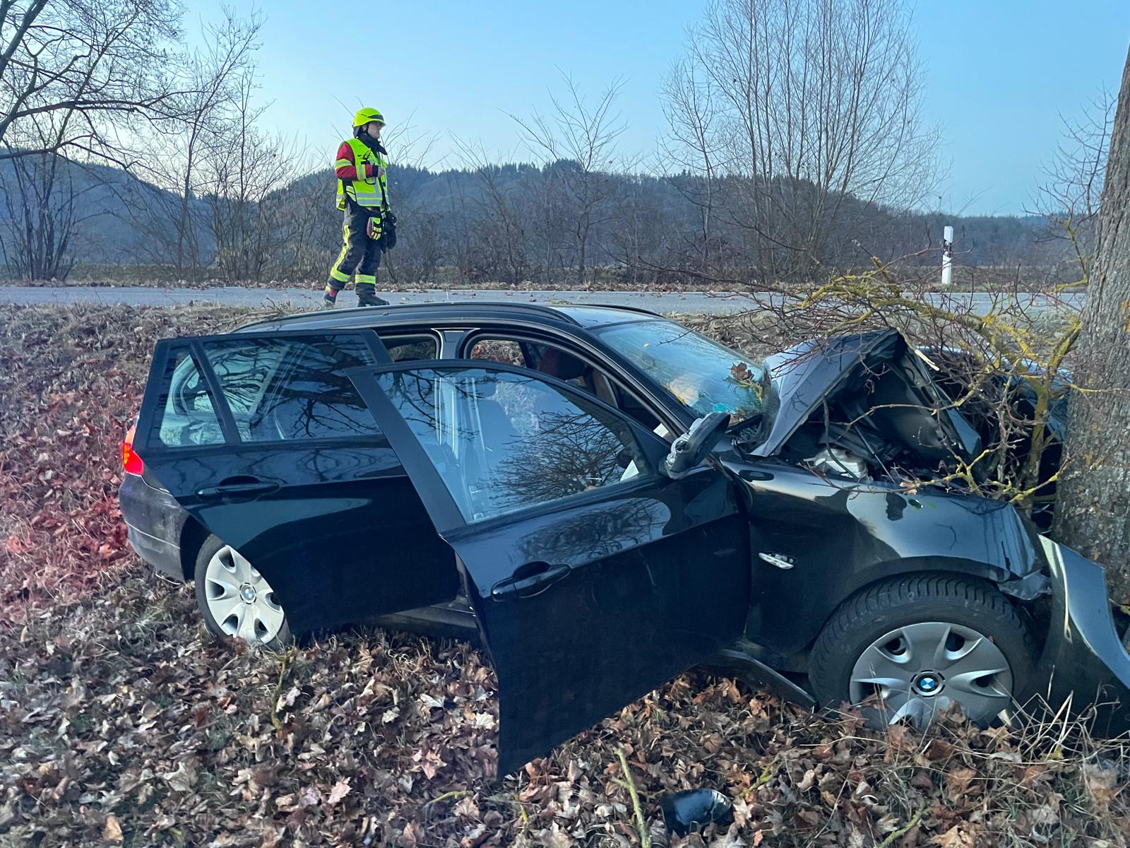 THL 1 VU mit PKWEin PKW ist von der Straße abgekommen und gegen einen Baum gefahren.